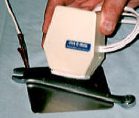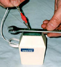 MARKING WITH GROUND PLATE — Simply Lay the Tool or Part on the Ground Plate and Touch ETCH-O-MATIC to it for a Few Brief Seconds and Your Mark is Permanently Etched Into the Surface.